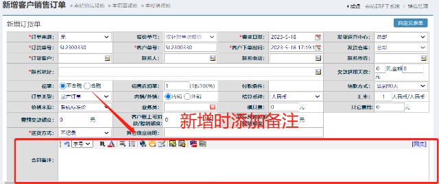 點晴模切ERP-銷售訂單審核時在合同備注進行添加或修改內容后,審核確認后會消失?