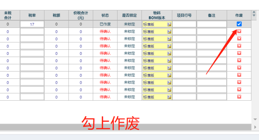 3.勾上作廢的明細內容 如下圖: 4. 最后點擊編輯保存即可 如下圖: