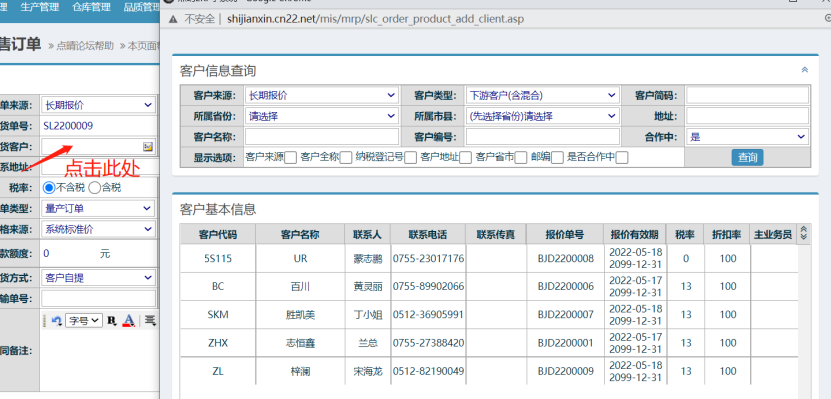 首先選擇訂單來(lái)源,一般選無(wú) 如下圖: ![]() 然后選擇訂貨客戶,在彈出的界面進(jìn)行選擇客戶 如下圖: