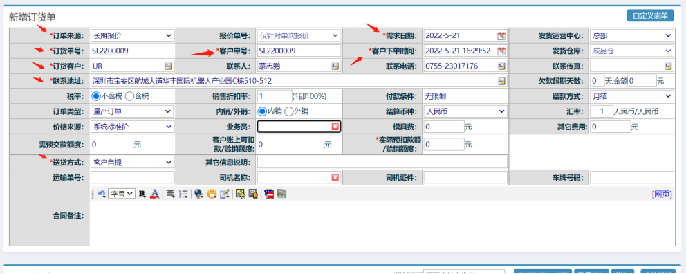 點(diǎn)晴模切ERP-新增銷售訂單