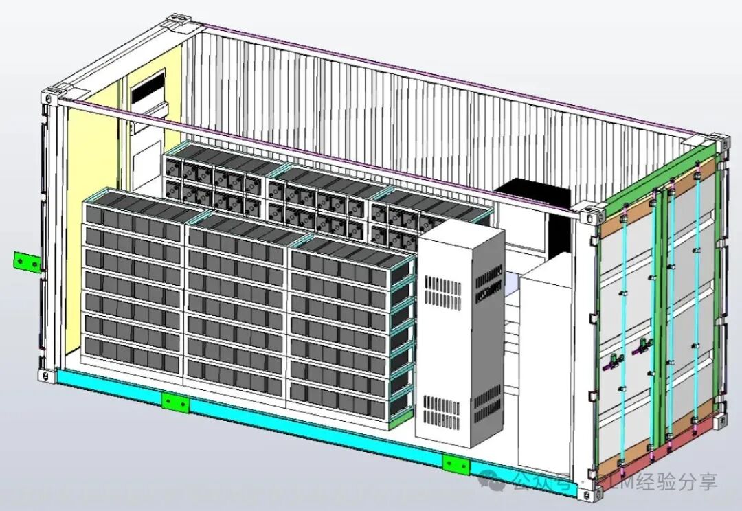 - 儲(chǔ)能柜體支撐不同功能的區(qū)域是隔離的,例如安裝Pack/電池簇系統(tǒng)的,安裝風(fēng)冷或液冷系統(tǒng)的,安裝PCS或變壓器組件的,都被隔離在不同區(qū)域,通過(guò)連接管線進(jìn)行電能或者介質(zhì)的傳遞;核心的結(jié)構(gòu)統(tǒng)一在箱體的框架中包含,但支撐的結(jié)構(gòu)劃分到與柜體框架并列的層級(jí),例如安裝固定Pack的、消防系統(tǒng)的,這樣若是某一功能修改時(shí),僅針對(duì)受影響的組件調(diào)整即可,最大化的隔離變更,降低變更的蔓延;