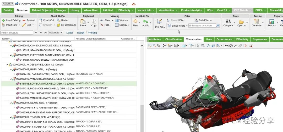 在企業(yè)中,我也比較愿意查看企業(yè)目前BOM管理系統(tǒng)中BOM的呈現(xiàn)形式,通過(guò)對(duì)BOM呈現(xiàn)形式的分析就可以快速了解企業(yè)的BOM結(jié)構(gòu)是經(jīng)過(guò)認(rèn)真規(guī)劃的,還是帶有更多“自由”的色彩;好的BOM結(jié)構(gòu)層級(jí)、層次感分明,傳遞的管理、協(xié)同信息非常清晰,當(dāng)發(fā)生變更時(shí),可以通過(guò)BOM結(jié)構(gòu)快速識(shí)別到變更基于接口的傳遞鏈,而不是到處蔓延;大家其實(shí)可以觀察和了解比較成熟行業(yè)的BOM構(gòu)成,例如飛機(jī)、汽車(chē)、管理成熟度高的電子產(chǎn)品等。