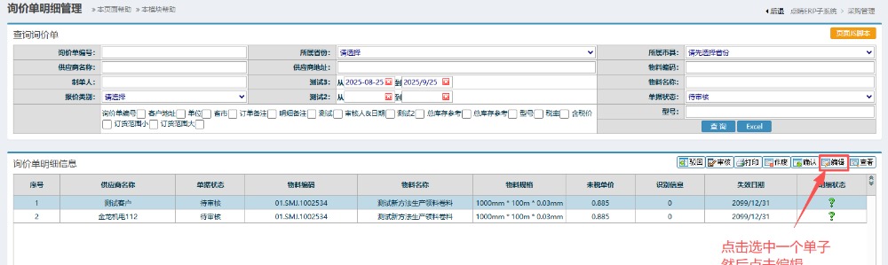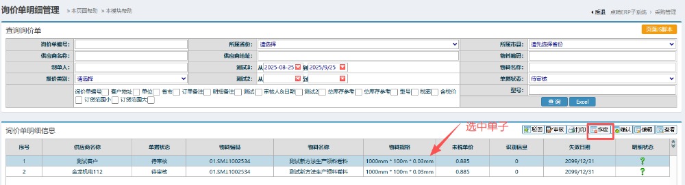 點晴模切ERP-編輯和作廢詢價單-操作流程