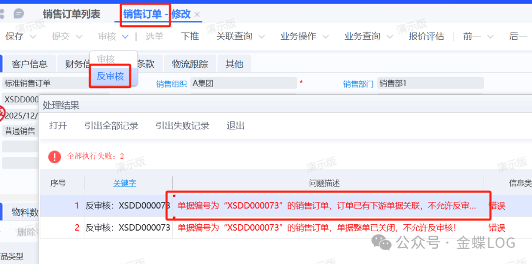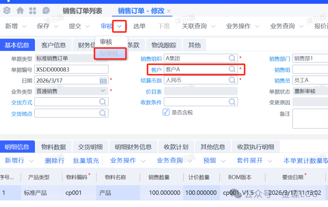 學完本篇文章,您將學會: ①銷售訂單無下游客戶修改方式 ②銷售訂單有下游客戶修改方式 ? A 問題解答一、銷售訂單無下游 如果銷售訂單在修改客戶時,還沒有關聯的下游單據,可以直接反審核銷售訂單進行修改。