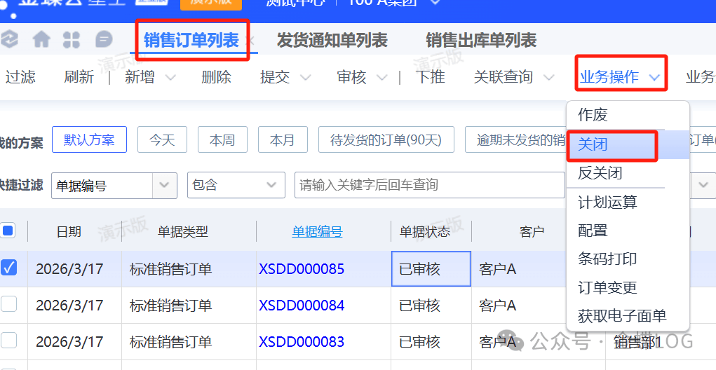 審核完退貨單之后回到【銷售訂單列表】將訂單進行關閉,重新下一張新的訂單,選擇正確的客戶走流程。