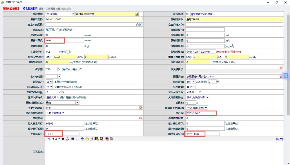 每個材料的厚度和公差、剝離力標準、環保有效期我在物料信息這里輸入后,能直接在來料檢測報告上體現出來嗎 答:針對這個問題可以先在“系統管理”》“物料信息維護”中找到對應物料,然后對物料信息進行編輯,如:物料厚度、主條碼編號和服輔助條編碼進行修改。 然后重新在“倉庫管理”》“物料入庫管理”》“采購入庫管理”里點擊查...