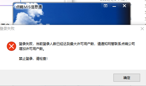 點晴MIS/OA信息通提示登錄失?。寒斍暗卿浻脩魯狄呀洺鍪跈鄶?,請聯系點晴公司增加授權數!如何解決??點晴MIS信息通PC客戶端