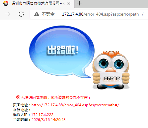 訪問點(diǎn)晴OA系統(tǒng)提示錯(cuò)誤:無法訪問本頁面,您所請(qǐng)求的頁面不存在,頁面地址:error_404.asp 提示很清楚,就是要訪問的頁面不存在。如果網(wǎng)站其他頁面可以正常訪問,那就是當(dāng)前要訪問的頁面丟失了,可能的原因是被Windows系統(tǒng)中的安全軟件刪除了此頁面,解決方法為下載點(diǎn)晴OA最新版升級(jí)包(http://u.oa22...