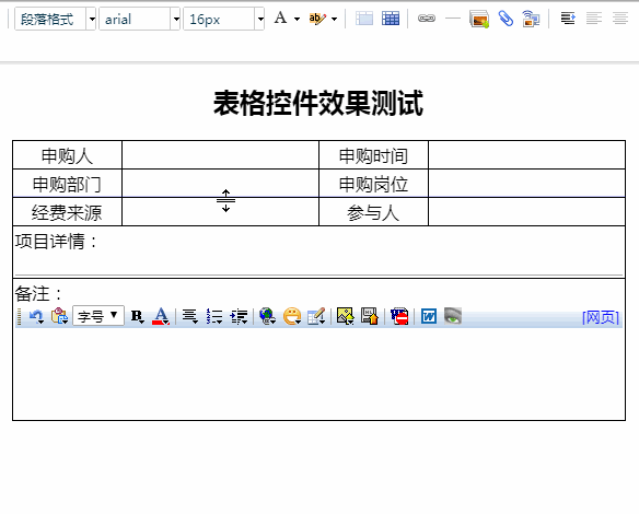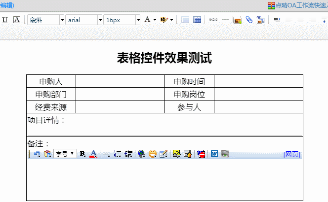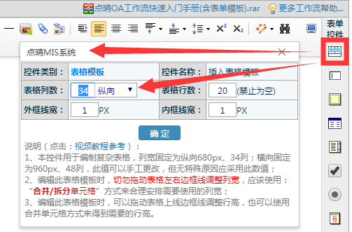 :如何直接調整工作流表單模板中表格的單元格行高和列寬?好像不能通過鼠標右鍵彈出菜單的方式設置![]() 注意,在新版點晴OA工作流表單設計器中,表格的插入是通過表格控件,然后合并各個單元格最終實現需要的復雜表格樣式: ![]() 根據上圖所示,插入表格的寬度只與錄入的表格列數有關,要減少表格的寬度,就需要減少表格的列數即可: 以上為新插入表格寬度的調整方法,修改上面的表格列數,就可以調整插入表格的寬度,插入表格的寬度=插入的列數×20px。 如果需要編輯已經按照以上方法生成的表格寬度,需要刪除/增加多余的列來變通實現列寬的縮小/增加表格寬度(顯示原始列的方法為拆分單元格): ![]() 注意,拆分單元格后,會看到此列為5個列寬(5×20px=100px)合并單元格而來,刪除一個列寬后,還剩余4個列寬(4×20px=80px),每刪除一個列寬,整個表格就會減少寬度20px。 總之,不要直接拖動單元格邊框來調整列寬,一定要通過增加或減少列數的方式來增加或減少表格寬度。 行高的調整則更為簡單,直接將鼠標光標放在表格橫線上,看到調整圖標后,點擊鼠標左鍵拖動調整即可: ![]() 該文章在 2021/1/16 16:00:07 編輯過